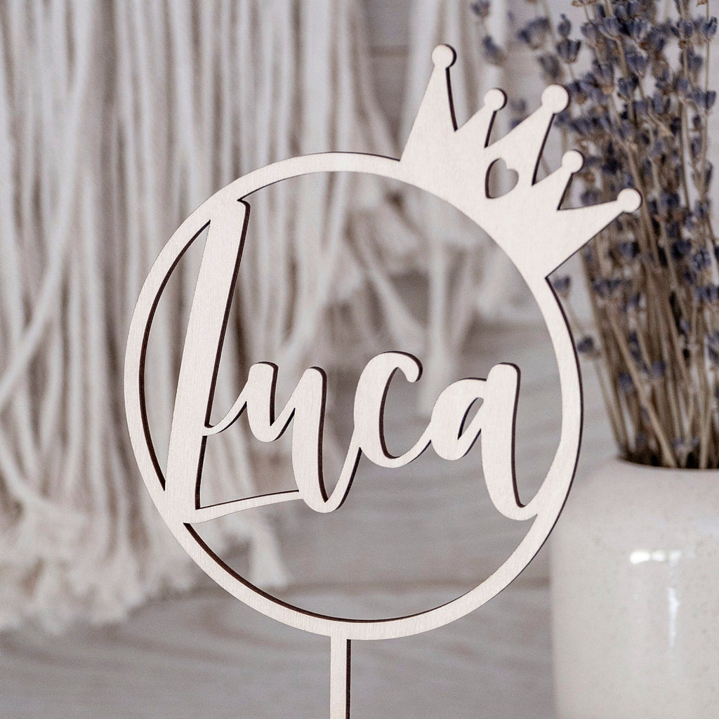 Unser liebevoll gestalteter Cake Topper mit der Krone wird mit dem Namen des Geburtstagskindes personalisiert und ist der funkelnde Hingucker auf jeder Geburtstagstorte.