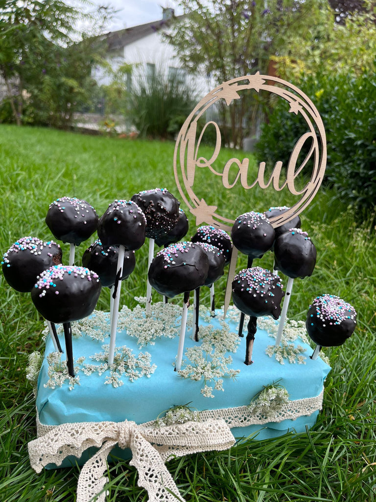 Dieser personalisierte Caketopper lässt jeden Kuchen gleich noch festlicher aussehen. Dadurch, dass nur der Name darinsteht, kann er mehrmals verwendet werden