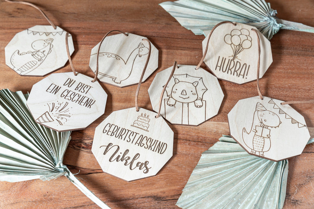 Eine süße Geburtstagsgirlande für Kinder, mit 7 Schildern, eines davon personalisiert mit dem Namen des Kindes. Tolle Deko für jeden Kindergeburtstag! Auch eine schöne Geschenkidee.