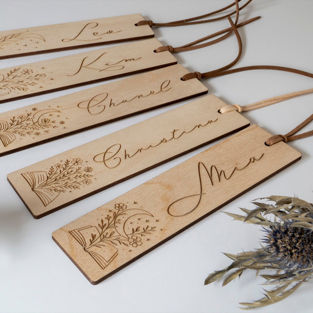 Unser personalisiertes Lesezeichen aus Holz ist das perfekte Accessoire für alle, die Bücher lieben! Jedes Stück wird mit viel Liebe zum Detail gefertigt und individuell für dich graviert. Auf der Vorderseite kann dein Wunschname eingraviert werden, während die Rückseite Platz für eine persönliche Widmung, ein Zitat oder eine kleine Botschaft bietet. So entsteht ein einzigartiges Einzelstück, das ideal als Geschenk für Leseratten, Freunde, Lehrer oder Schüler geeignet ist.