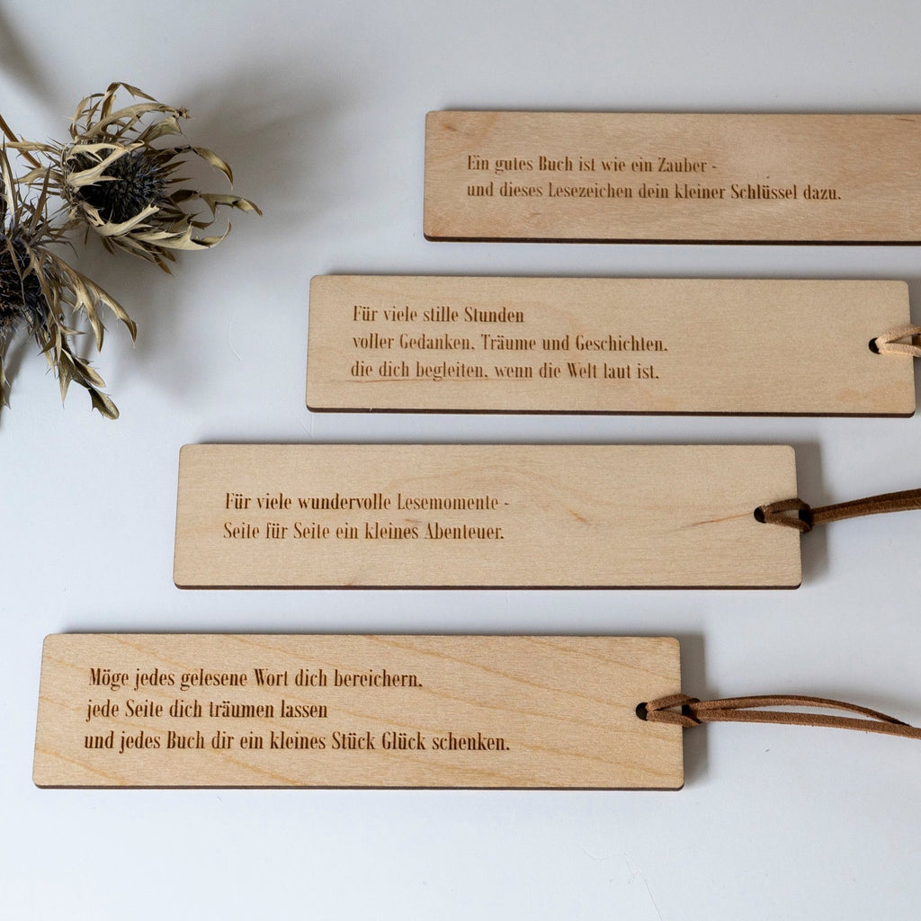 Das Lesezeichen besteht aus hochwertigem Birkensperrholz. Das Lederband rundet das Design harmonisch ab und sorgt für einen eleganten, zugleich natürlichen Look. Ob zum Geburtstag, zu Weihnachten, zum Schulanfang oder einfach als kleine Aufmerksamkeit – dieses liebevoll gestaltete Holzlesezeichen ist ein Geschenk mit persönlicher Note, das garantiert Freude bereitet.